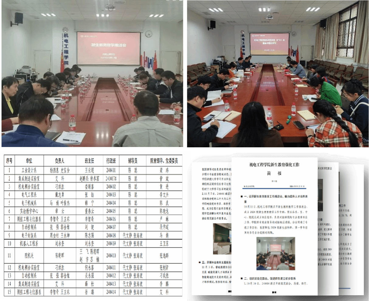 强化新生教育教学工作是学院扎实落实立德树人根本任务、推动“学在机电”浓厚育人氛围形成的重要举措。学院2024级新生教育教学贯穿一年级学段,创新形式、注重实效,围绕顶层系统设计、理想信念引领、优良学风建设以及专业学科教育等方面开展了形式多样、内容丰富的新生教育活动,形成了全员参与、全程关注的新生教育教学工作格局,切实引导好2024级新生树立正确的世界观、人生观、价值观,确立积极向上的人生目标,培养高尚的道德情操,更好适应大学学习生活。下一步,学院将继续聚焦“四个注重”,持续为新生“扫茫”、为新生“导航”、与新生“共振”,助力每一位新生顺利完成从高中到大学的过渡,进一步提高新生教育工作的质量和水平,帮助学生“入好门、走好路、学好业、成好才”,培养同学们逐渐成长为有理想、敢担当、能吃苦、肯奋斗的新时代青年。