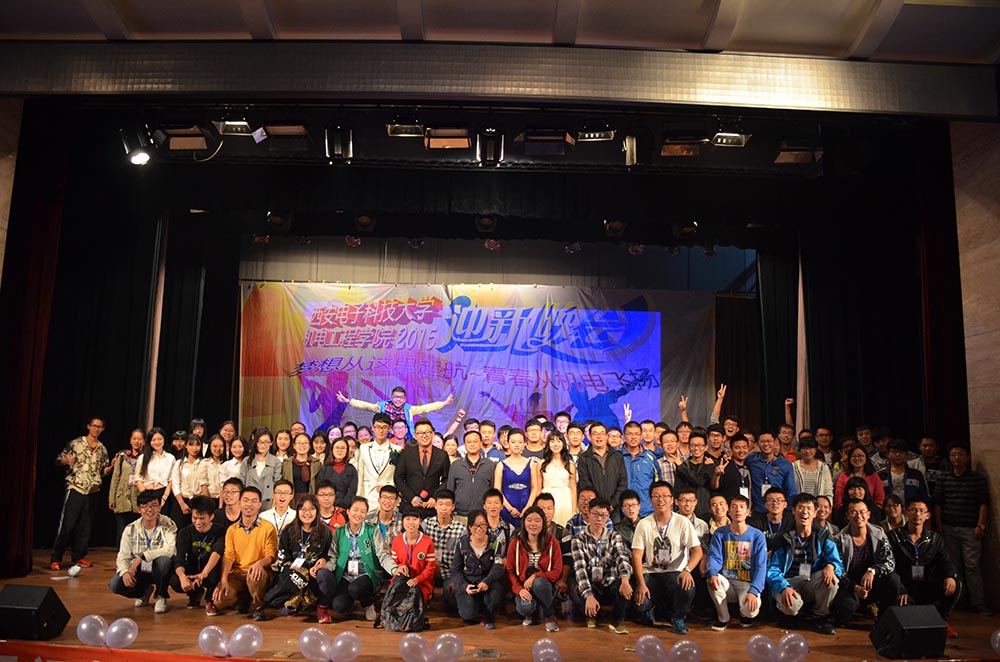 晚会开始由校舞蹈队带来的舞蹈《潇洒小姐》惊艳全场,随后在热烈的掌声及阵阵欢呼下,主持人宣布晚会开始。紧接着有轻松的歌舞节目为大家助兴,随后的校体操队也向同学们展示了我们西电的强大。5名校歌赛歌手通过快闪方式出场活跃了现场氛围,自动化班级带来的爆笑小品将晚会推向高潮。晚会同时还邀请了联谊院校西安外国语大学旅游学院的同学为我们带来精彩的舞蹈。晚会的最后,测控二班表演的话剧带领同学们回忆军训那段有苦有乐的时光。