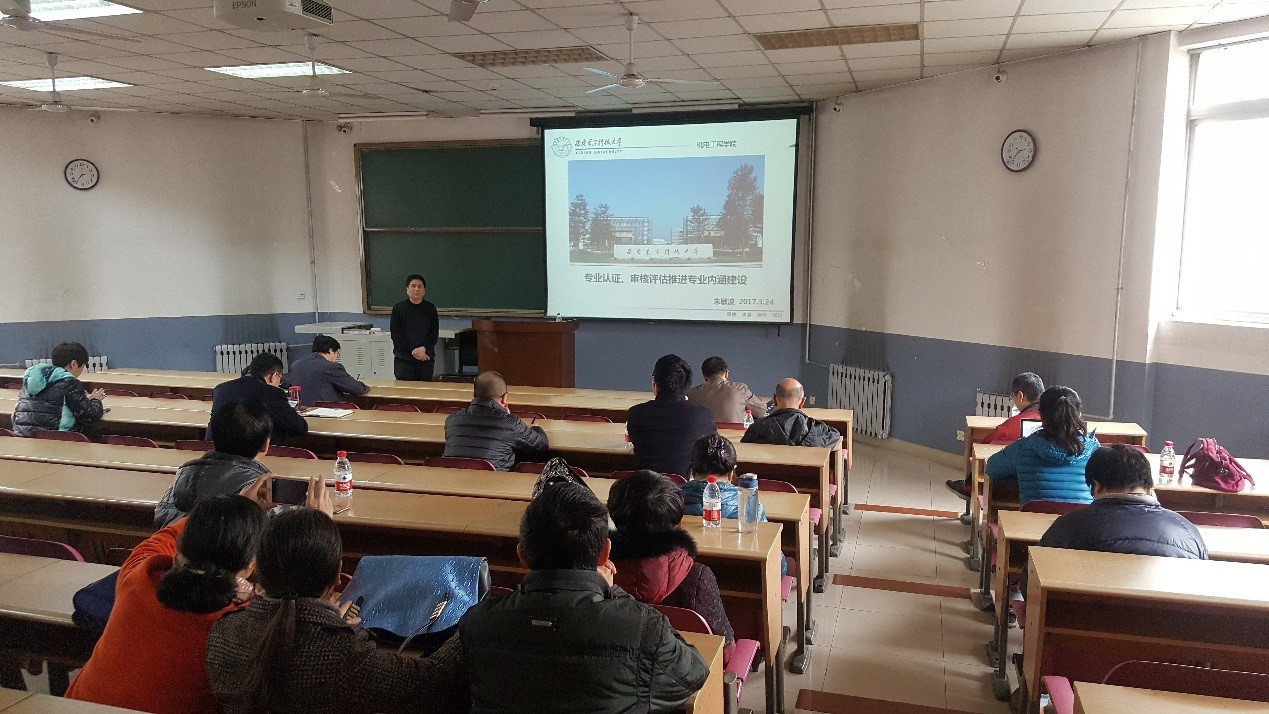 为做好本科教学迎评促建工作,进一步加强专业内涵建设,促进一流专业建设,教师教学发展中心联系米兰milan官方网站于3月24日再北校区阶梯教室201举办“专业认证、审核评估背景下推进专业内涵建设”主题教学沙龙,米兰milan官方网站电子机械系教学负责人、校级教学名师朱敏波教授主讲,米兰milan官方网站、微电子学院各专业教师代表共20余人参加。