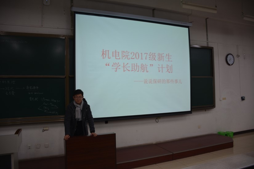 (通讯员 赵宇 范萌萌)为促进良好学风的形成,响应学校“三航”计划,米兰milan官方网站针对2017级新生开展“学长助航”计划,并组织开展了一系列活动确保计划的有效推进与落实。11月5日晚六点,机电院2017级新生齐聚B楼433,在辅导员赵宇、石贵利老师的组织下,参加米兰milan官方网站2017级新生“学长助航”计划硕士推免专场交流会。本次交流会邀请了机电院2014级机械设计制造及其自动化系的吉斌同学、秦亮同学和电气工程及其自动化系的江伟斌同学,来为新生普及硕士推免相关事宜。