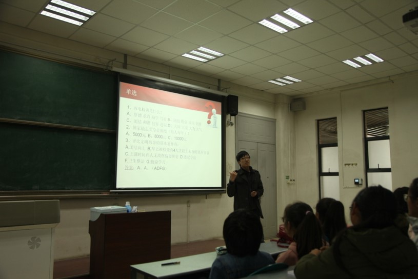 1704041班和1704021班于11月1日联合开展了此项竞赛活动。活动开始后,首先进行的是必答题环节。两个班以宿舍为单位,共组成十三个小组。每个小组代表分别从十三套题中选择一套,并在规定时间内作答。答题过程中,赵宇老师针对诸如国家奖学金与国家励志奖学金的问题,向同学们进行了详细地讲解。