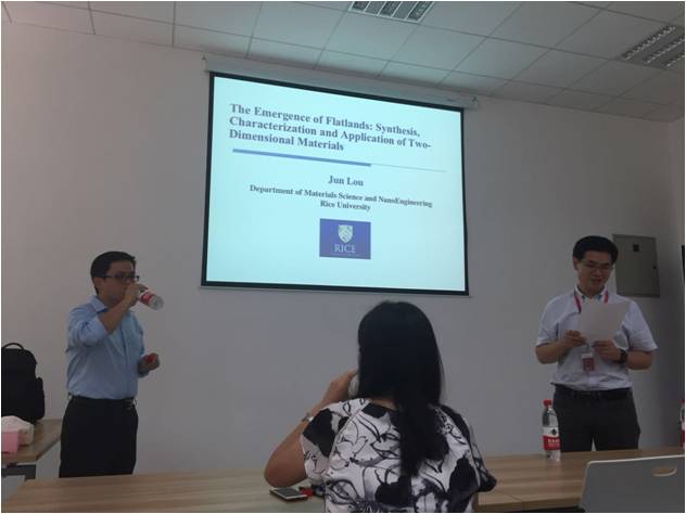 2017年20日下午,楼峻教授在我校北校区III-143会议室作了题为“The Emergence of the Flatlands: Synthesis, Characterization and Application of Two-Dimensional Materials”的报告,王卫东教授主持了报告会。