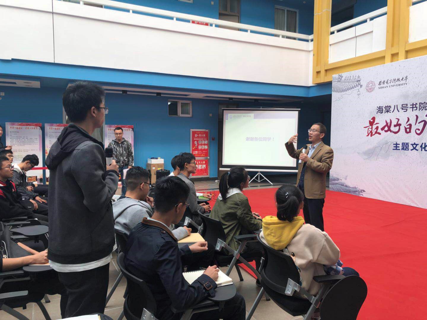 李老师对大学生如何实现个人发展提出了自己独到的见解: “青年兴则国家兴,青年强则国家强”,李老师希望同学们在西电学习的四年里能够积极参加锻炼、提高自我素质、增强专业技能,做到自信自强、勇于发声、勤于实践、应需求学,不断提高个人综合素质,时刻肩负使命感,成为祖国振兴的中坚力量。 他建议同学们应对自己的大学学习和生活进行细密的规划和有效的自我管理,充分利用学校提供的多种资源,把理论知识应用到实践中去,在实践中发现问题并提出解决方法,在实践中见真知。