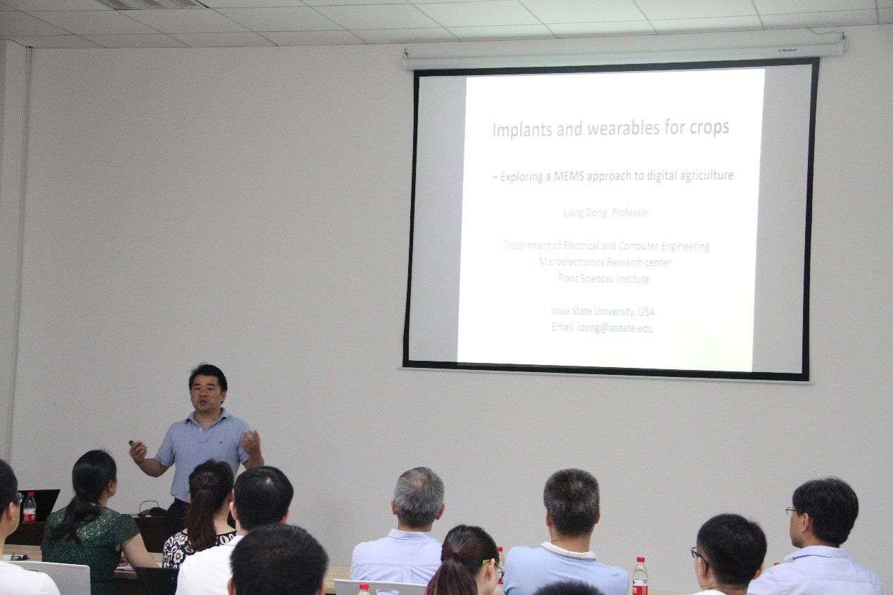 会上,董良教授以全球粮食安全问题为切入点,指出了微机电系统(MEMS)技术在植物学和农业领域巨大的社会和经济影响,通过植物营养传感器、土壤养分传感器,可穿戴植物传感器,植物芯片等在数字化农业的应用为师生分享了这一全新领域的未来蓝图。董良教授还同与会师生就微机电系统、传感器研究双方感兴趣的话题进行了深入地探讨。
