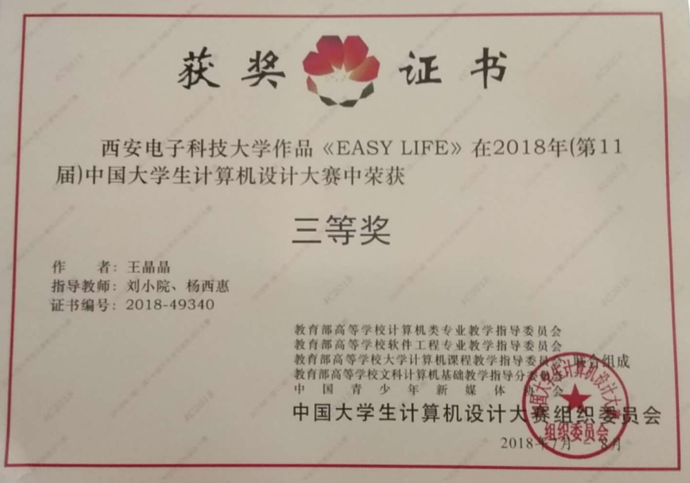 本次赛事,我院工业设计专业学生共提交了11件作品参加校赛,获得3项一等奖,3项二等奖,3项三等奖,且获得一等奖和二等奖的6件作品全部推荐西北赛。在西北赛中,获得4项二等奖,1项三等奖,1项优秀奖,4项二等奖作品全部推荐全国赛,并在全国赛获得1项二等奖、3项三等奖,展示了我院学生的计算机水平与设计风采。