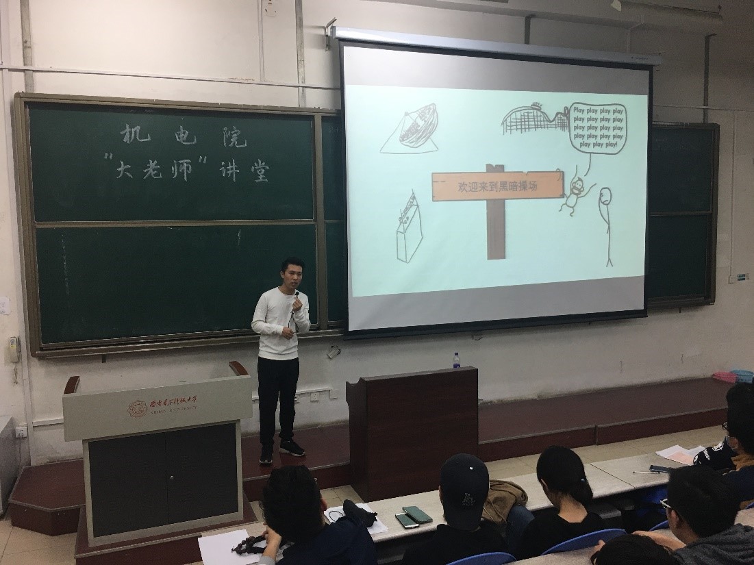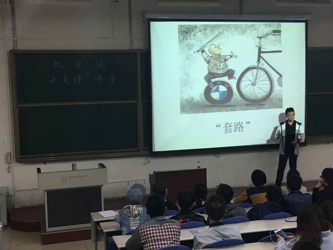 最后上台的是1704021班申宇飞同学,他讲述一项伟大的发明--自行车的设计诞生过程,“如今我们已经步入了设计改变中国命运的时代,只要生活中存在问题,那么人人都能成为最好的设计师,去解决这些问题”,他鼓励同学们在生活中能有一双善于发现问题的眼睛,并有一颗勇于解决问题的心,学会利用自身所学,改善自己的生活质量,学以致用。