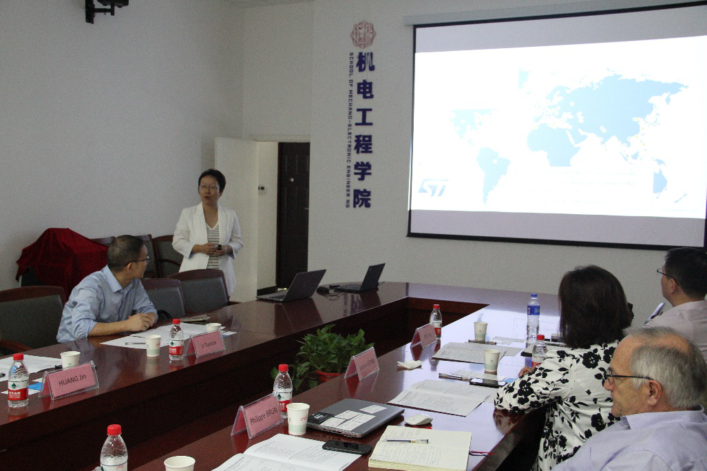 梁炜书记对Philippe BRUN总经理一行表示热烈的欢迎。黄进院长介绍了学校学院的基本情况、产学研服务国家的地方的发展情况。他热切期望与ST的合作由实践教学基地提升到研究生培养以及课题研究等方面,进行深度与全方位的合作。