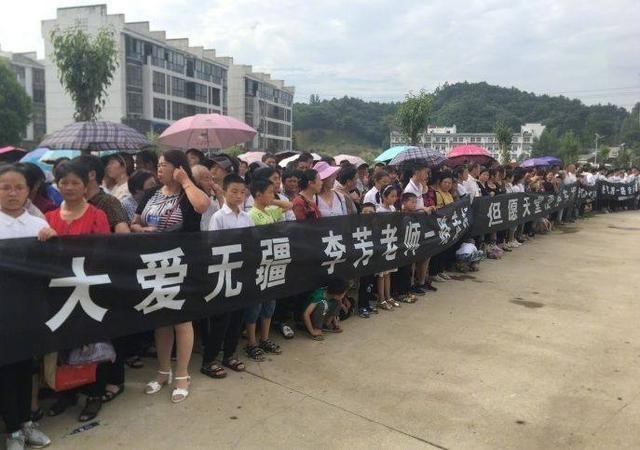 在河南省信阳市浉河区董家河这个小镇上,近5000人的送行队伍把灵堂前一公里多的道路挤得水泄不通。他们都是来为以身挡车救学生而英勇牺牲的绿之风希望小学教师李芳送行。“那天,你救学生,我看到了。我不认识你,但我知道,你一定是个好老师!所以,今天我来看看你……”一位老人因挤不到跟前,手抹眼泪不住地张望……