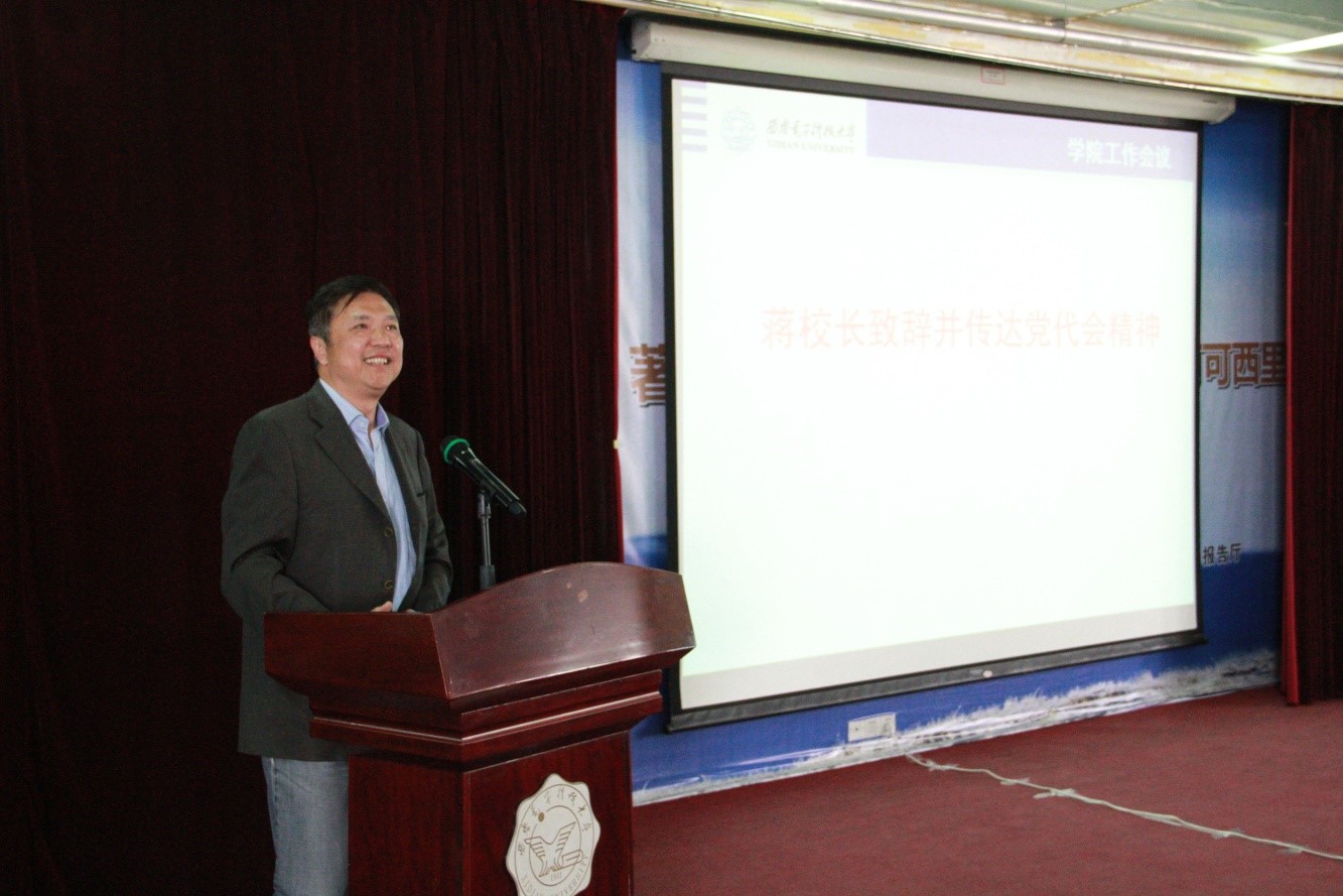 米兰milan官方网站党委书记梁玮传达了学校2018年工作会议精神,对2018年学院党建和行政工作进行了整体部署和安排,要求全院师生认真学习学校十二次党代会精神、2018年学校工作要点和党建工作要点,坚定信心,真抓实干,推动学院教学科研,人才培养和学科建设再上新台阶。副院长黄进、李团结、史琳,副书记陈波分别详细汇报了学院2018年学科科研,教育教学,人才人事、国际化和学生工作计划。2018年学院将强化基层组织建设,全面提升党建工作水平,深化综合改革,积极做好国家级科研平台、异地研究院培育和申报工作,修订人才培养方案,实施一流专业建设,推进工程教育专业认证,加强高层次人才队伍建设,细化、明确岗位职责,完善聘任、考核办法及学院绩效分配体系,积极联系合作办学,筹建全英文专业,拓展留学生教育,进一步提高学院国际化水平,加强大学生思想政治教育与价值引领,提升学生党建质量,推动毕业生高质量、均衡就业。