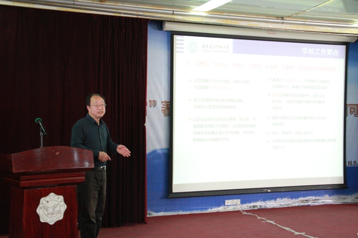 前任院长仇原鹰教授代表上一届领导班子详细回顾总结了学院2017年工作取得的成绩。学院2017年成功召开第四届党代会;郑晓静院士荣获第十届“周培源力学奖” ,荣获“国家友谊奖”1项 ;获国家自然科学二等奖和国家科技进步二等奖各1项,电子装备结构设计教育部重点实验室以优秀成绩通过评估;在第四轮学科评估中,学院牵头负责的机械工程学科和仪器科学与技术学科分别位于B+和B档,取得了显著进步;力学和电气工程成功获批一级学科硕士学位授权点;获省级教学成果二等奖1项,自动化和测控技术与仪器两个专业工程教育认证申请得到教育部认证中心受理,电子封装技术专业被中国科学评价研究中心评为排名第一的唯一全国五星级专业。