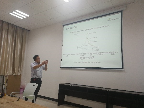 (通讯员:严粤飞)9月4日,我校米兰milan官方网站电子装备结构教育部重点实验室邀请了英国阿斯顿大学贾昱副教授来实验室进行了交流。贾昱副教授现任于英国阿斯顿大学机械工程系,本硕毕业于英国南安普顿大学,并在剑桥大学工程学院获得博士学位。贾昱副教授主要从事于非线性振动动力学、能量收集、微机电系统等方向的研究,迄今为止已发表SCI论文近30篇,申请专利12项,且担任39个期刊的审稿人、IEEE高级会员等。