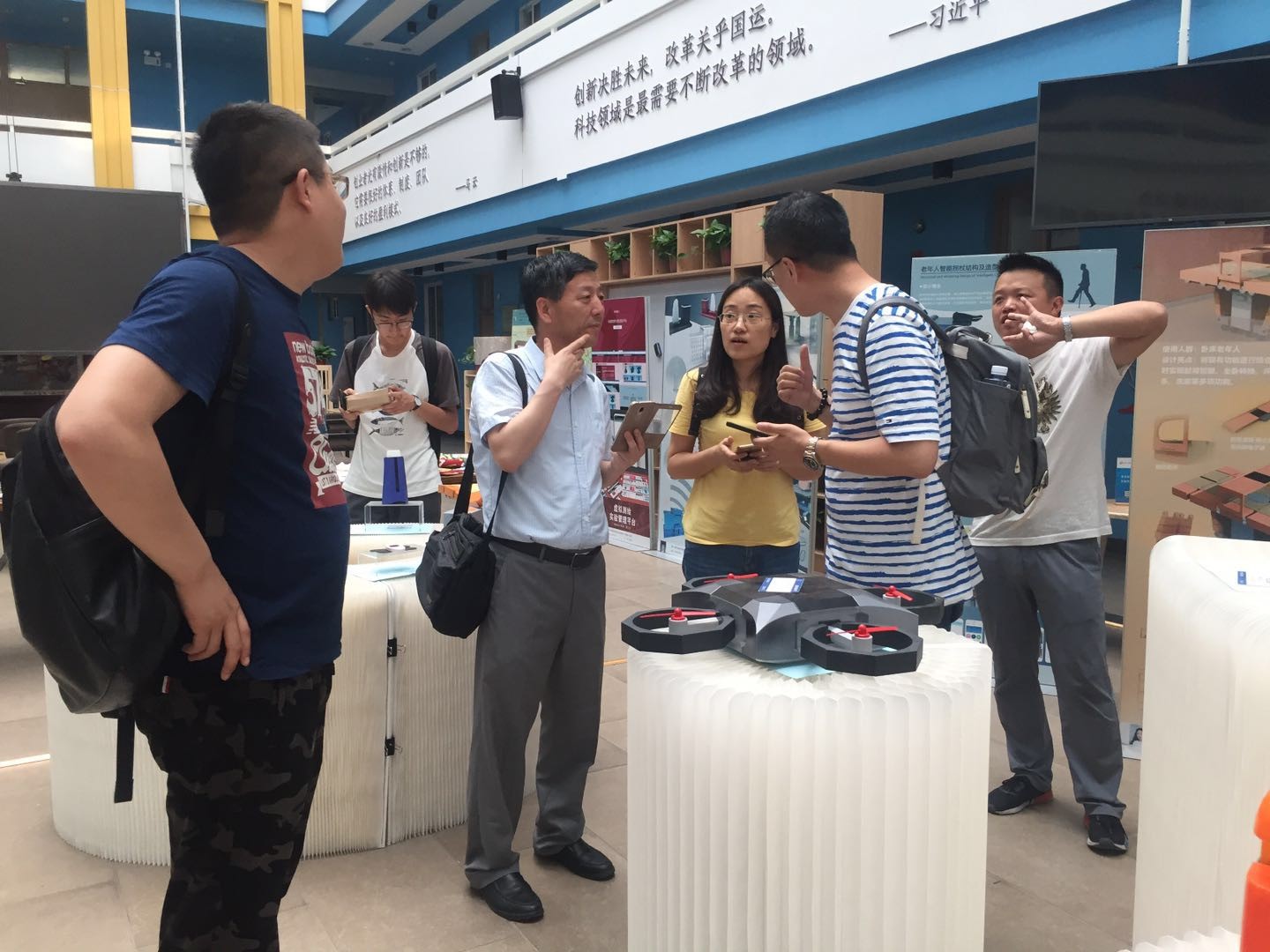 交流会后,6位校友在海棠8号书院参观了2019届工业设计毕业展。他们认为毕业设计作品面宽、理论联系实际、所做东西接近实用,并为专业人才培养取得的成绩感到高兴,同时表示将加强与专业的联系,为专业建设和发展贡献自己的力量。