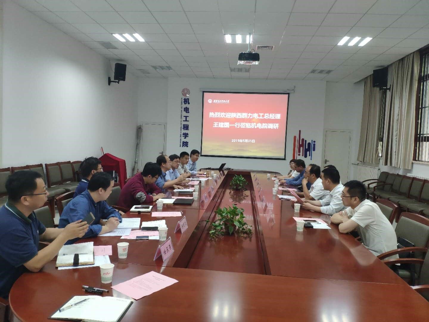 黄进院长首先对王建国总经理一行的到来表示热烈的欢迎,然后从学院历史沿革、学科专业、师资规模等方面简要介绍了学院情况。王从思副院长从学院的优势科研方向、专利转让、产学研合作模式及取得的成果等方面介绍了学院的科研情况,并重点介绍了与陕西群力电工有限责任公司有技术对接的科研团队情况。