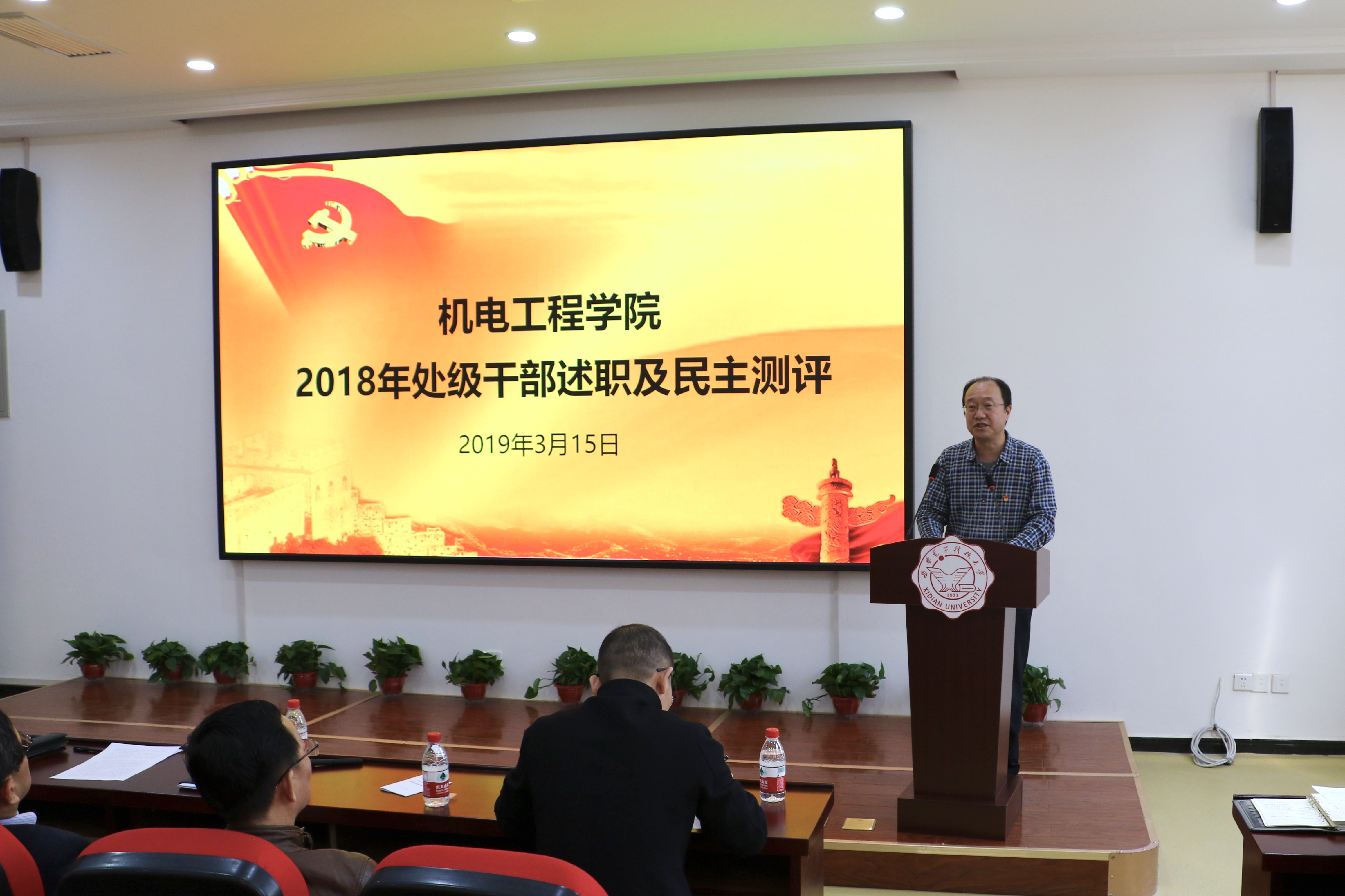 学院党委书记梁玮首先代表班子成员向全体教职员工作2018年班子述职报告,重点围绕思想政治建设、领导决策能力、工作实际、党风廉政建设等进行阐述,对学院2018年在全校绩效考核中获得第一、扶贫工作考核获得第一等亮点成绩给予了肯定,对全院师生的辛勤付出表示感谢,并表示领导班子将在转变工作作风、责任担当等方面继续改进加强。随后,学院班子成员梁玮、黄进、李团结、田雨、王从思、陈武分别从德、能、勤、绩、廉等方面依次进行个人述职,重点汇报了2018年开展的各项工作,对于存在的问题提出改进思路和措施。述职结束后,学院教职工对领导班子和领导干部进行了2018年民主测评。