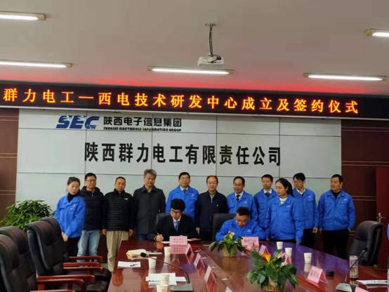 上午11点,群力电工-西电技术研发中心成立签约仪式正式开始,群力电工王建国总经理和西电机电院王从思副院长在合作协议上签字,标志着群力电工与西电机电院的合作进入一个全新的阶段。