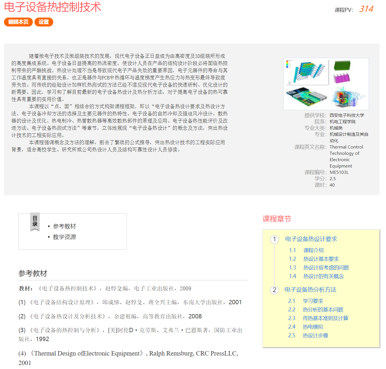 观看“微视频”,在线学习:提前在“学在西电”平台建好课程学习网站。课程内容与大纲基本一致,知识点覆盖全面,但部分知识点需要扩展(如热分析软件及案例部分),以开阔学生视野,提高解决实际工程问题能力。