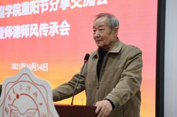 原测控系教授王家礼作为一名在学院工作了五十多年的老教师,他从个人从教经历讲起,他认为,做一名好老师,要热爱祖国、遵纪守法、爱岗敬业、关爱学生、勤于教书育人,要高质量做好本职工作。新时代下,青年教师要不断学习,认清形势,紧跟时代发展,要做到终身学习,不断进步。
