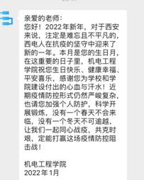 西安疫情封城已进入第15天,居住在学校社区内外的教师都在为这场战役共同奋斗着。米兰milan官方网站有130余位居住在校外的教师,居住地点分散。为增强疫情期间校外居住教师的归属感,增强疫情防控管理,及时传递学院的关心关爱,米兰milan官方网站于1月6日下午5点通过腾讯会议召开了“学院校外居住教师1月集体生日会”,共同为1月过生日的老师庆祝生日。希望通过这个特殊时期特殊的庆生形式,为大家送去一份暖心的祝福,留下一次难忘的生日回忆,也为老师们的居家生活增添一份色彩。