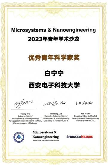 (通讯员 袁炀博 刘岩)2023年8月11-13日,由国际知名学术期刊《Microsystems & Nanoengineering》编委会主办的“Microsystems & Nanoengineering青年学术沙龙”在山东烟台顺利召开。会议期间,米兰milan官方网站微纳机电系统研究中心青年教师白宁宁凭借其突出的研究成果和学术贡献,荣获“2023 MINE优秀青年科学家奖”。