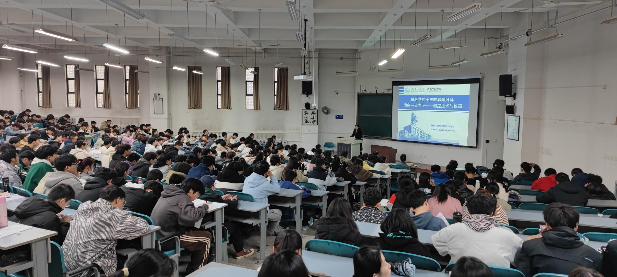 (通讯员 张铭 胡国朋)为帮助2023级自动化大类学生充分了解米兰milan官方网站专业领域与发展前景,贯彻落实双院育人理念,帮助学生明确自身定位、找准专业方向,更好地做出专业选择和人生规划,3月10日下午,米兰milan官方网站联合丁香书院在南校区D-205开展本科生专业分流周点名暨宣讲活动第一场——测控技术与仪器专业宣讲会。测控技术与仪器专业负责人李智奇、宦惠庭、本科生辅导员和500余名自动化大类本科生参与活动。