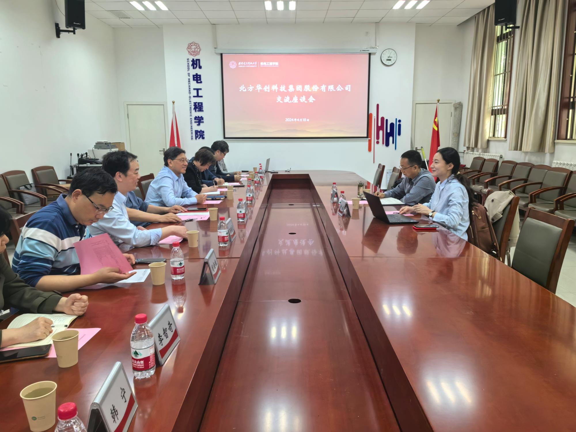 (通讯员 王飞)4月18日下午,北方华创科技集团股份有限公司人力资源管理中心总监谢谦、西安子公司副总经理王跃利来学院调研交流,米兰milan官方网站党委书记梁玮、执行院长黄进、副院长陈晓龙、相关各系所主任及教师出席。座谈会在北校区主楼三区145北会议室举行,会议由陈晓龙主持。
