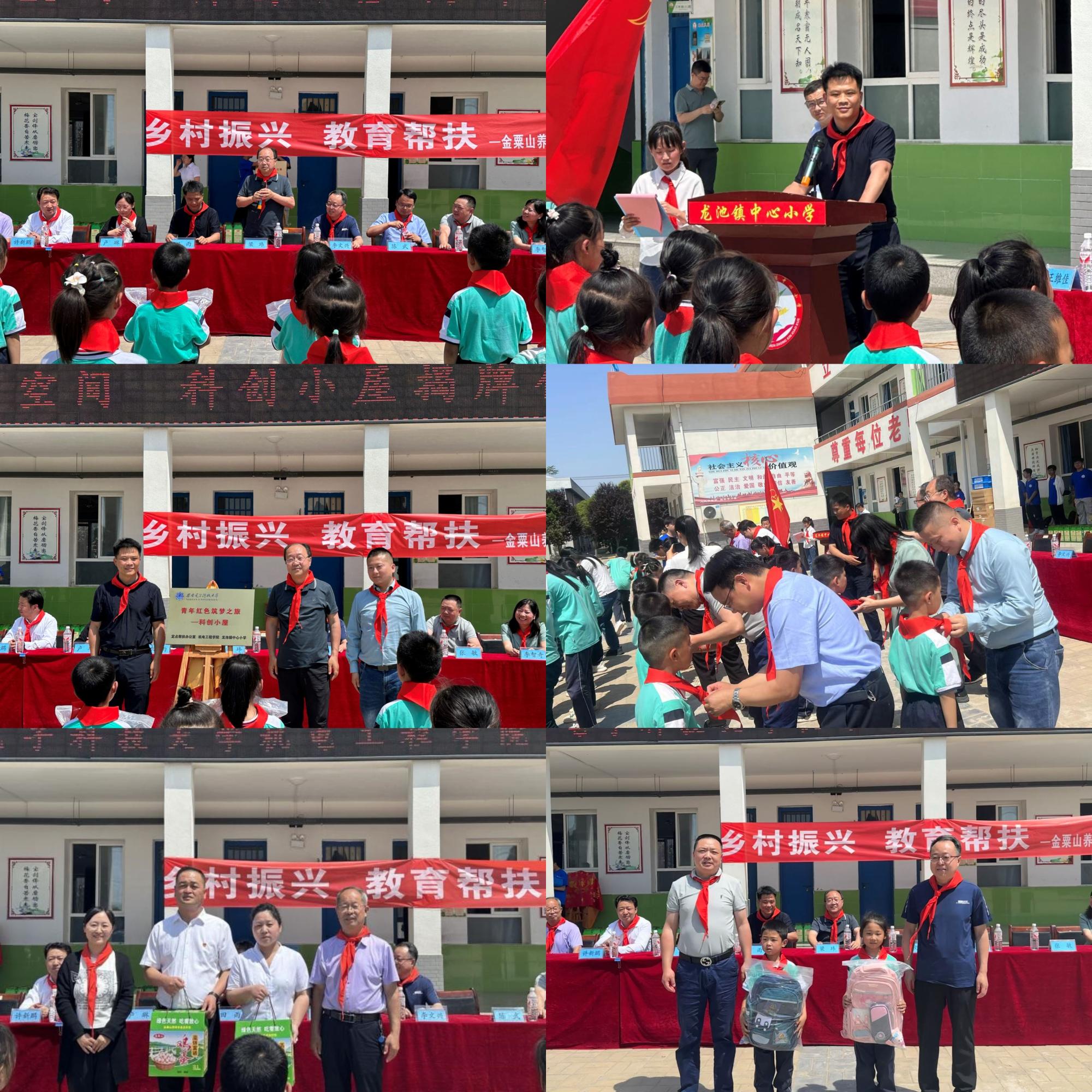 其次,米兰milan官方网站党委副书记陈武、西安匠为智能科技有限公司董事长张敏、蒲城县金粟山养鸡合作社董事长王向东,西安慈善总会副会长杨勇共同向新入队的少先队员们捐赠学习文具及鸡蛋等爱心物资,作为提前庆祝六一儿童节的礼物。