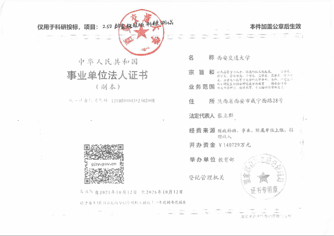 按照《米兰milan官方网站科研协作项目管理办法(试行)》文件规定,为加强学校科研协作项目的管理,确保面向射频器件2.5D封装转接板多场耦合可靠性研究的顺利进行。西安交通大学与项目负责人王永坤将开展科研合作,现将合作相关事项公示如下:
