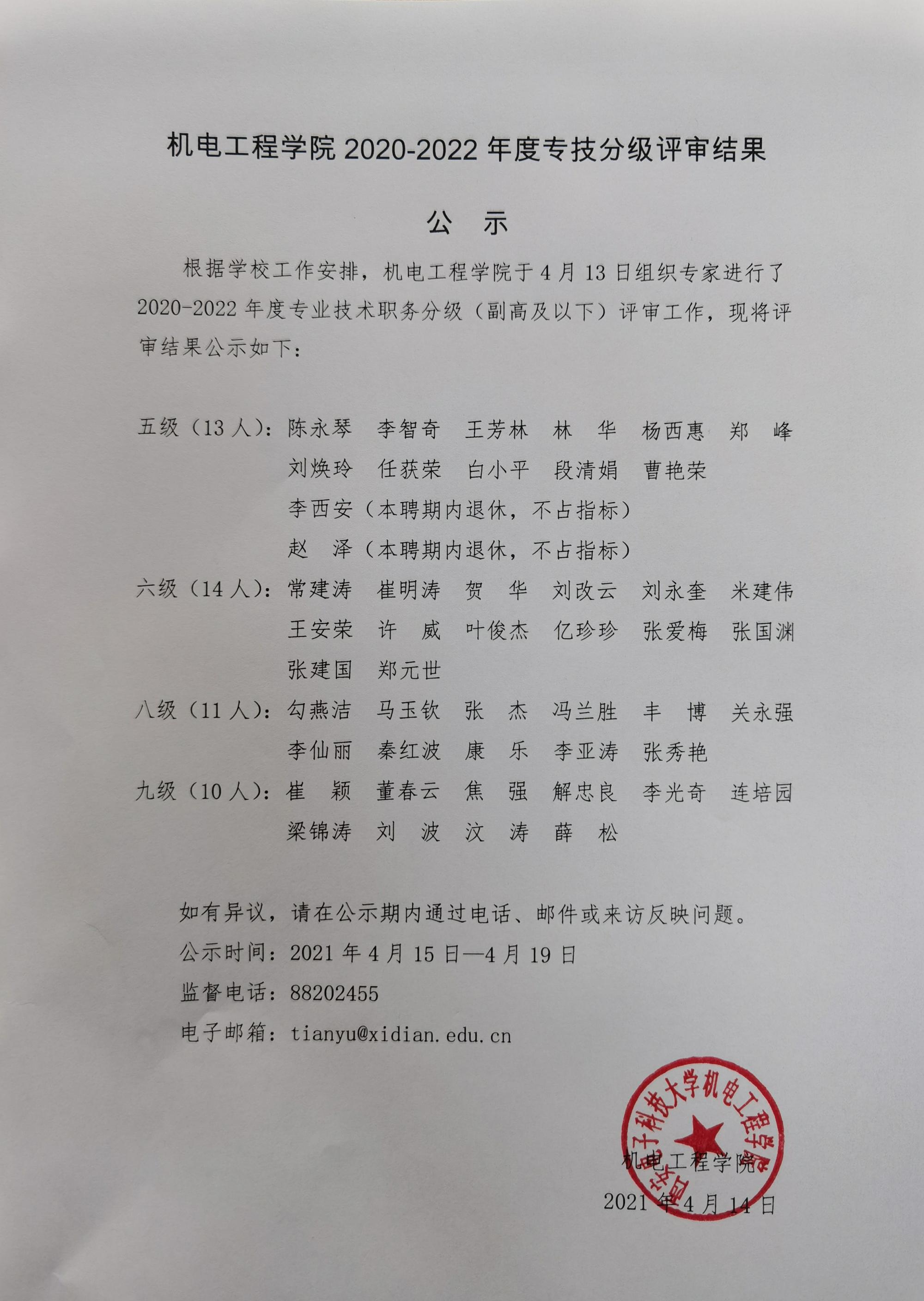 米兰milan官方网站2020-2022年度专技分级评审结果公示