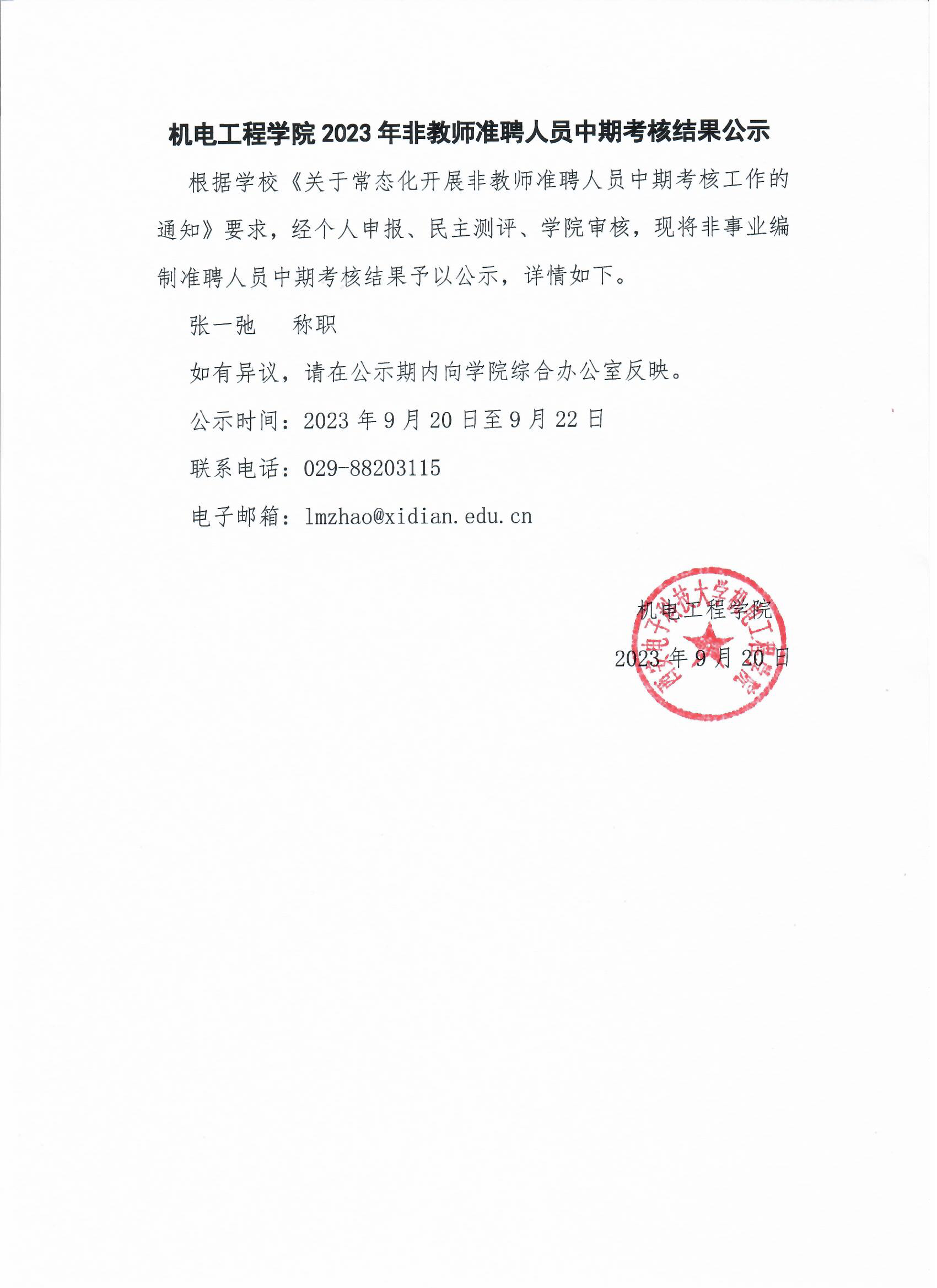 米兰milan官方网站2023年非教师准聘人员中期考核结果公示(公示期已过)