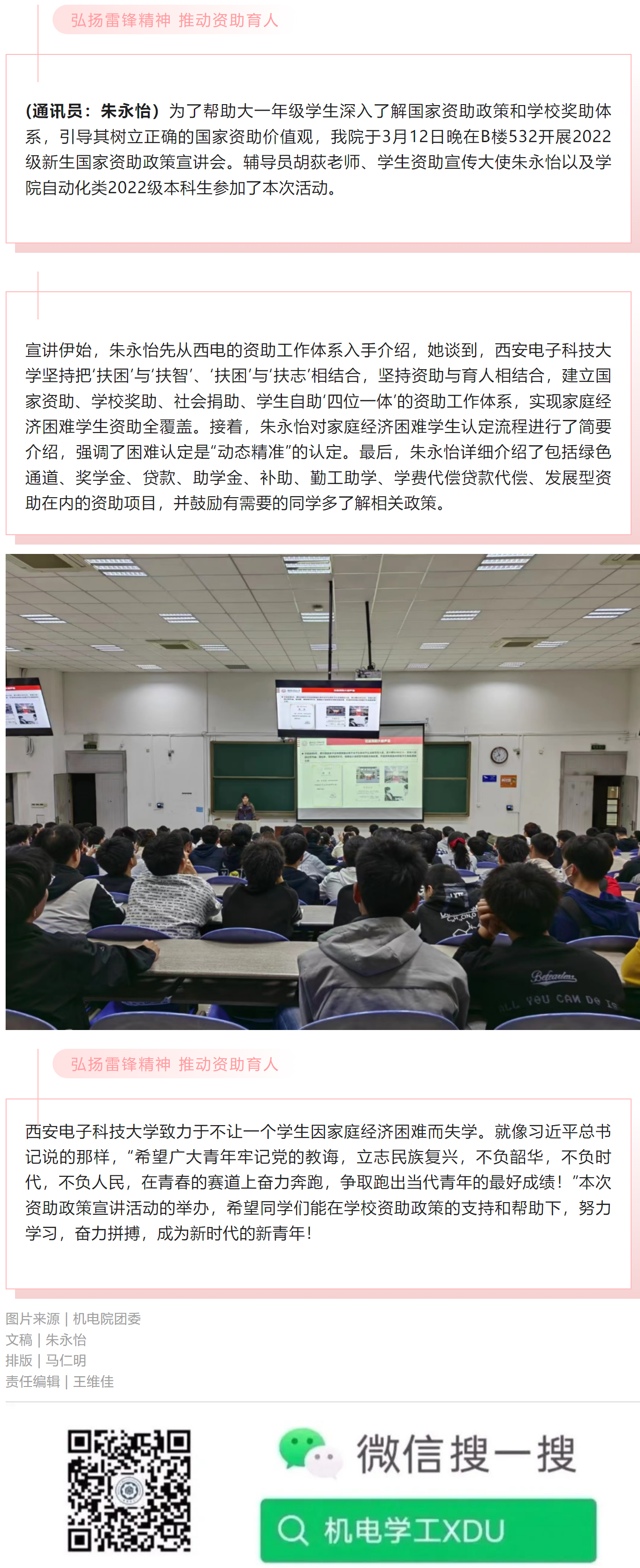 弘扬雷锋精神 推动资助育人│米兰milan官方网站开展资助政策宣讲活动
