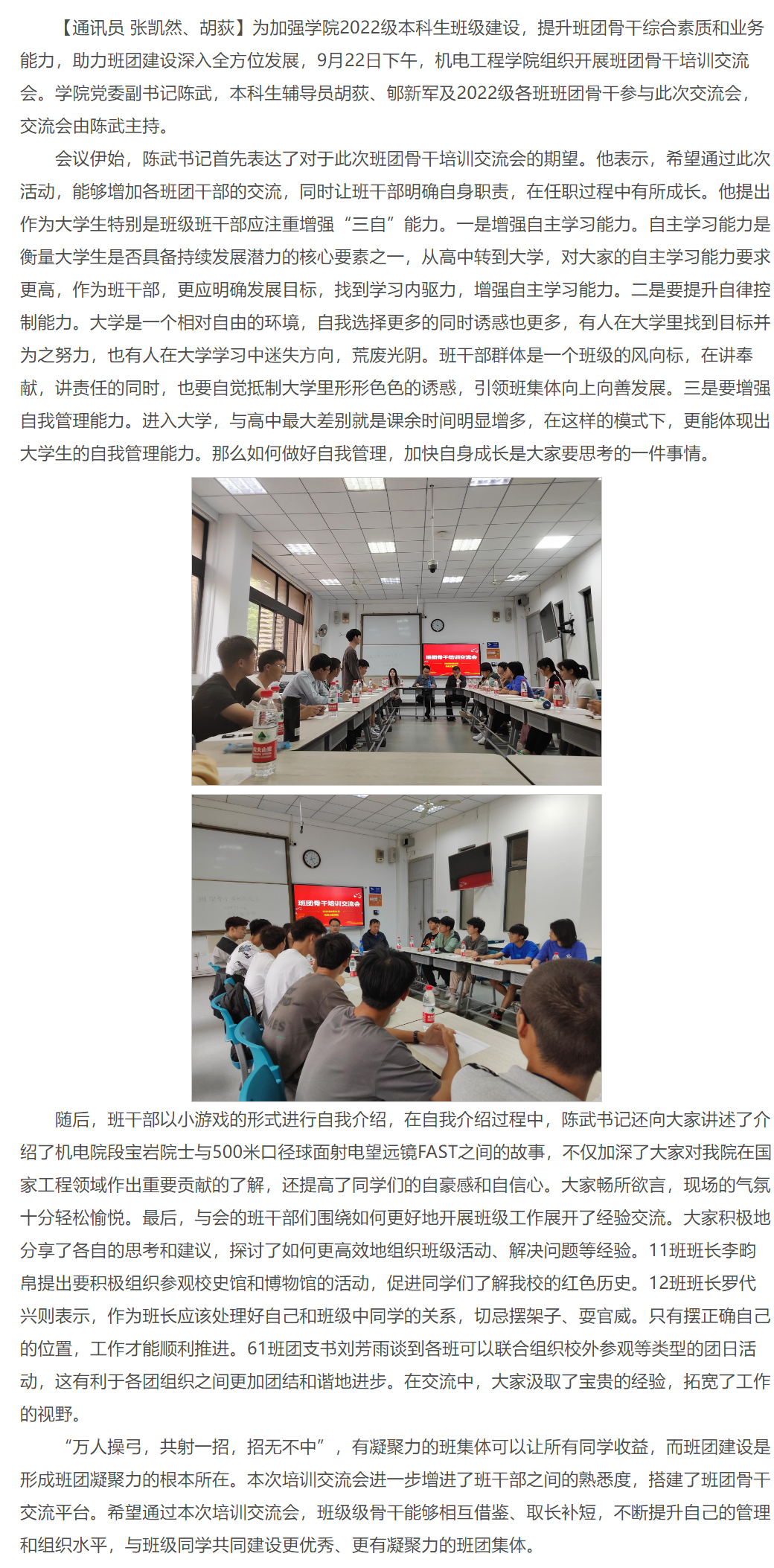 不忘初心 携手前行┃我院举办2022级本科生班团骨干培训交流会