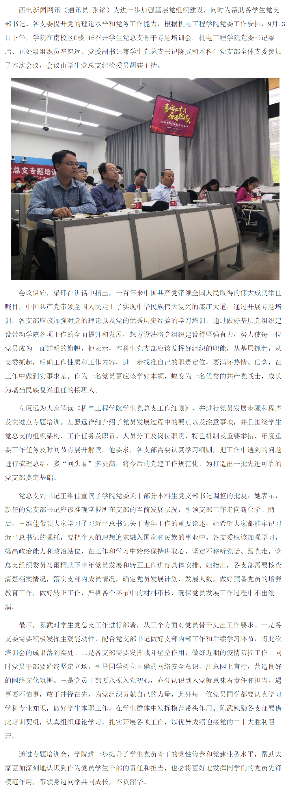 米兰milan官方网站召开学生党总支骨干专题培训会