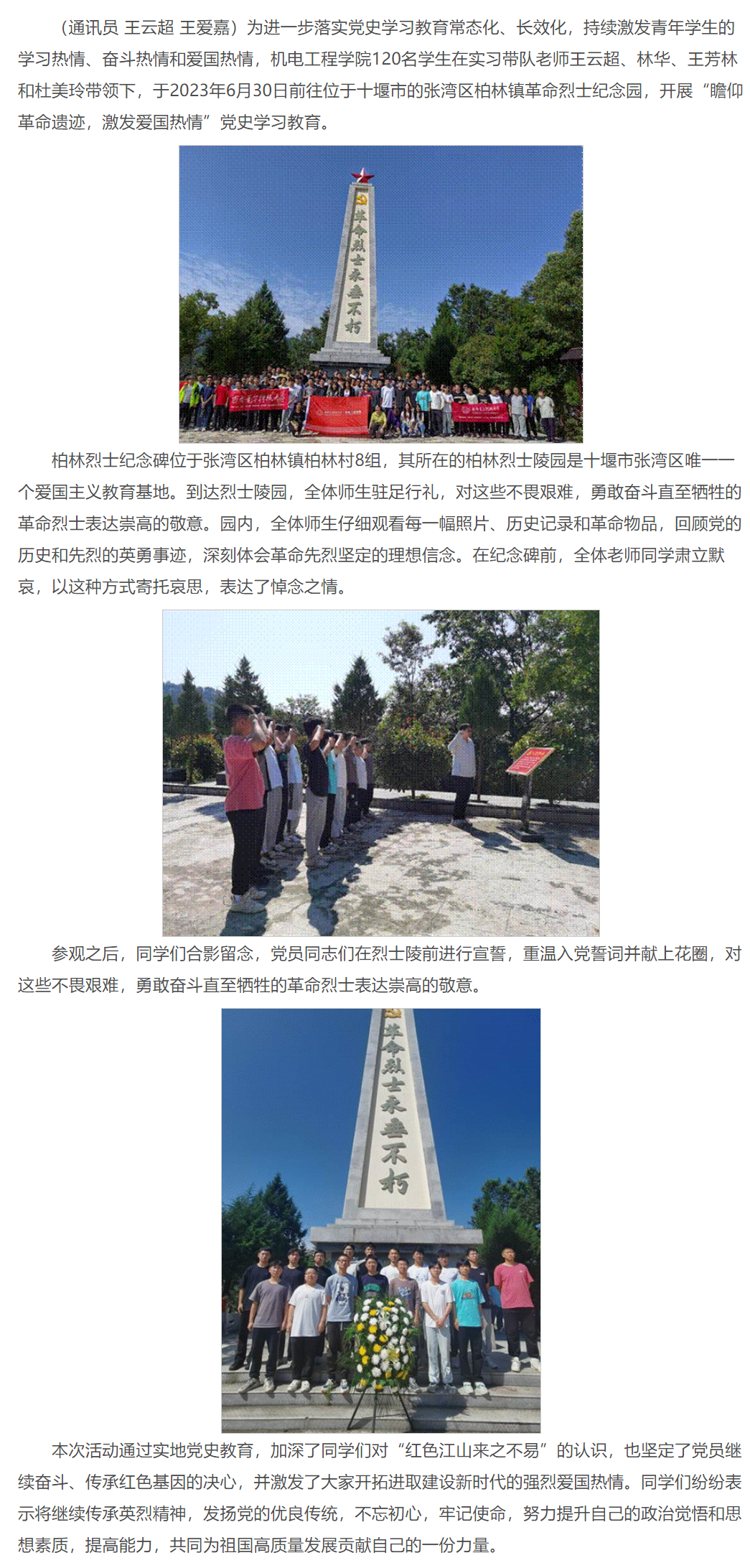 米兰milan官方网站赴十堰生产实习师生开展“实习不忘革命先烈,陵园重温入党誓词”党史学习教育