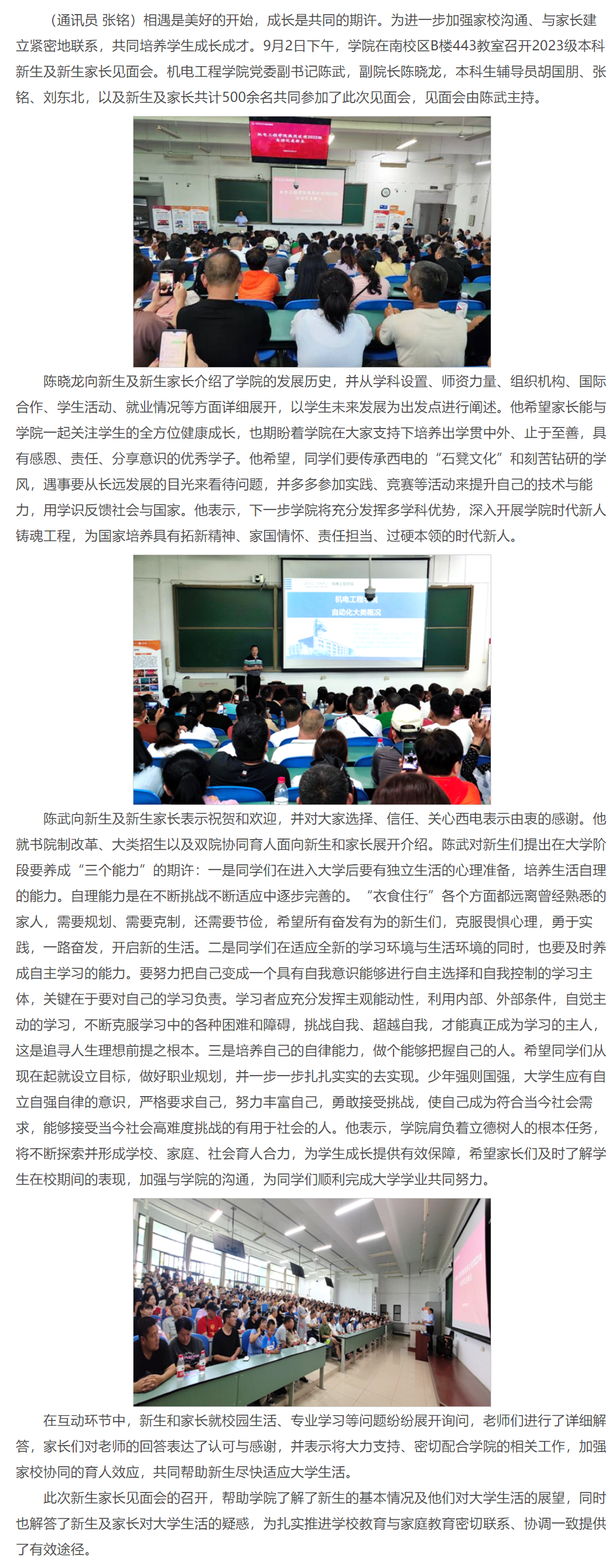 米兰milan官方网站顺利召开2023级本科新生及新生家长见面会