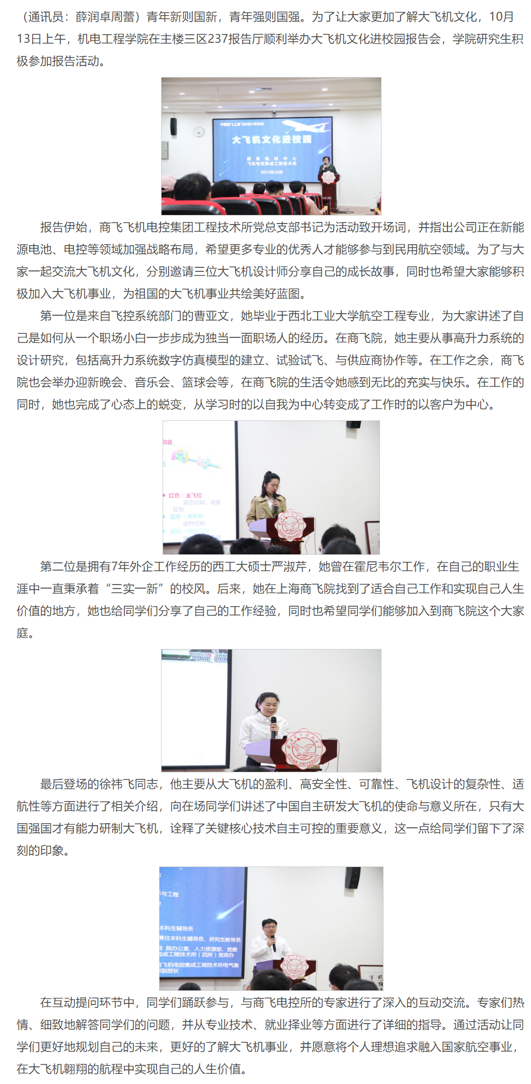 米兰milan官方网站开展大飞机文化进校园