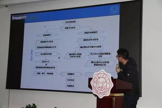 参评同学依次展示了自己的科研成果。王红红就在医疗背景下建立的机器人模型进行讲述,常晓昀介绍了关于残缺信号的修复方法及结果,邓文尧从光学角度讲述了对于无人机的跟踪和位姿测量的作用,胡泽男提出封装造成的焊点失效问题,并做出简化模型分析各因素对封装的可靠性影响,姜浩通过运用概率密度演化理论建立的相关模型,得出了较好的实验结果,金锡强通过仿真与实验的结果也说明了其论文的创新点,彭文豪提出了传统的相控阵天线的建模所存在的问题,进而进行了馈电重构,王晓春介绍了自己在双目成像研究上的研究成果,赵洋洋讲解了对于特定的金属材料的研究。答辩过程中,评委老师针对每位学生的展示进行了提问和点评。整个活动,既充满了科研的严谨性,也不乏老师对于同学们深切的教导,交流活动张弛有度,有条不紊。