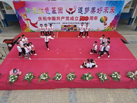 (通讯员 卢嘉润 何思源)6月25日,为庆祝中国共产党建党一百周年,深化以党史学习为主线的“四史”教育,进一步引导当代学生在实践中感悟初心使命,助力乡村振兴,发挥志愿服务精神,米兰milan官方网站经过前期多次的沟通交流,由米兰milan官方网站团委书记王维佳带领学生前往蒲城,参加由米兰milan官方网站和龙池镇中心小学共同举办庆祝中国共产党成立100周年文艺演出活动。