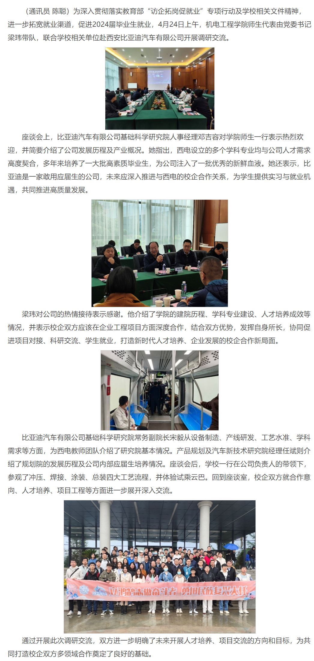 米兰milan官方网站赴西安比亚迪开展访企拓岗调研交流