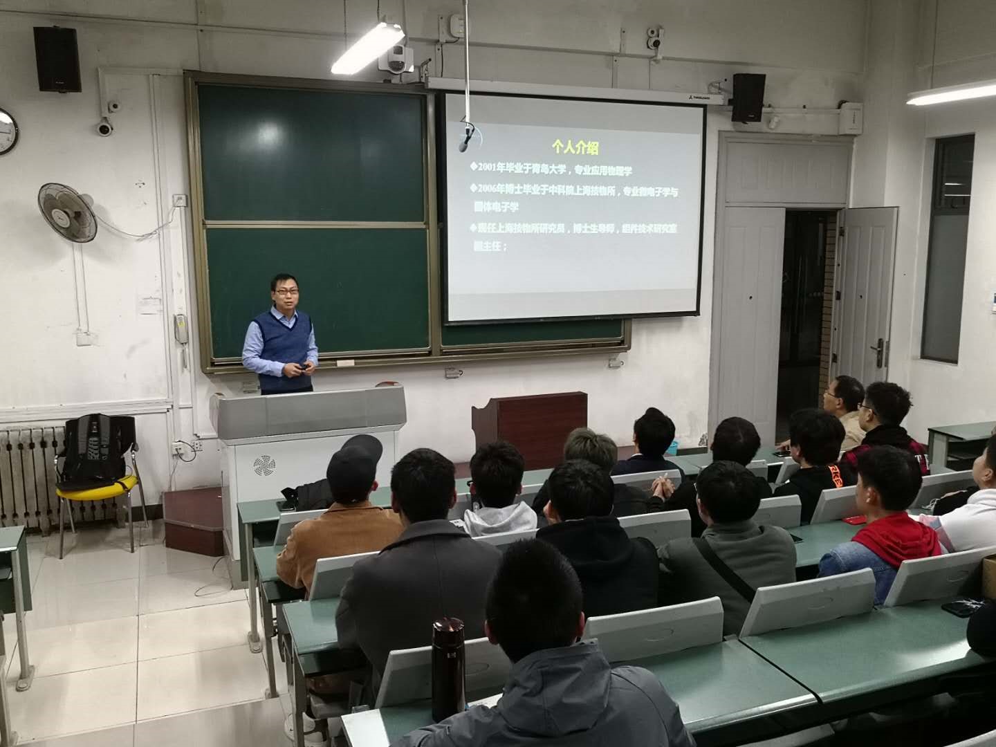 (通讯员 王永坤)2020年11月9日,中国科学院上海技术物理研究所研究员刘大福应米兰milan官方网站学院助理王永坤的邀请,为机电院师生作题为“铟镓砷短波红外探测器进展及应用展望”的报告会,本场报告会于南校区A105教师举行,报告由王永坤主持,米兰milan官方网站副院长陈武,电子封装系主任周金柱,电子封装系骨干教师高宏伟、曹艳荣、解忠良以及电子封装系学生参加了这次报告会。