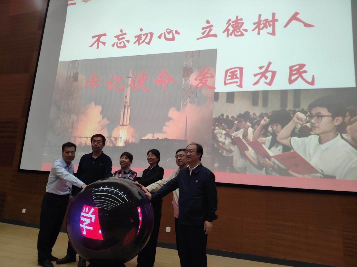 在书院第二报告,“学习延安精神、传承红色基因”主题教育活动正式启动,梁玮、黄进、夏永林、张海战与学习书院常务副院长石翠琴、延安日报社总编辑孙文珍共同按动了启动球,主题教育活动在300多名师生的见证下全面启动。