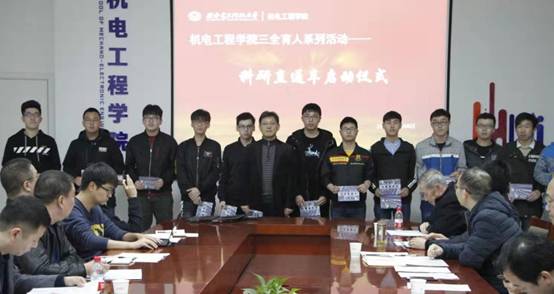 11月8日的启动仪式上,学院院长黄进为首批24名优秀本科生发放了科研直通车卡,黄进院长表示,科研直通车的启动将进一步加强同学和老师、本科生和研究生之间的交流。学院鼓励本科生“进实验室、进课题组、进科研团队”。在科研育人的理念下,培养学生至诚报国的理想追求、敢为人先的科学精神、开拓创新的进取意识和严谨求实的科研作风。