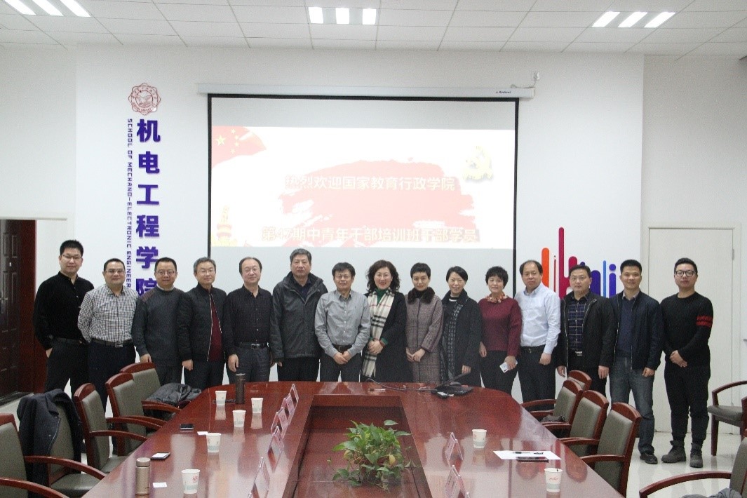 (通讯员 赵宇 曾子杰)12月22日,国家教育行政学院第47期高校中青年干部培训班的十多位学员在国教院于鲁文教授带领下来到我院,就院系智慧党建、信息化建设及创新型人才培养等事宜进行调研交流。座谈会议在北校区主楼III区145北会议室举行,机电院党委书记梁玮、执行院长黄进、党委副书记田雨以及学院智慧党建工作相关人员参加了座谈会。会议由梁玮主持。