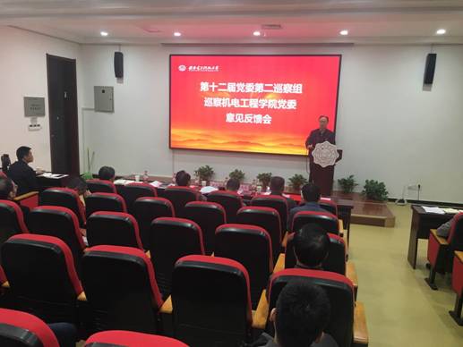 (通讯员 赵宇)10月31日下午,校第十二届党委第二轮巡察第二巡察组巡察机电院意见反馈会在北校区主楼3区237报告厅召开,校党委副书记、纪委书记、巡察办主任任应坤,巡察办副主任白旭东,巡察组组长朱红星,校巡察工作办公室相关人员,机电院全体党政领导班子成员与学院全体教职工参加了会议。会议由米兰milan官方网站执行院长黄进主持。