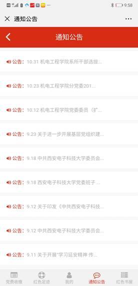 5.利用信息化手段促进基层党组织建设效率提升。依托学院党建微信公众平台“机电先锋号”搭载的“一云台两专栏四推送”---即“党建云”智慧管理系统平台,“党建资讯”、“特色栏目”两个专栏将党章党纪党规和专题教育的相关内容融于其中以及每月推送四次党建要闻宣传党的政策、传达上级精神、交流“不忘初心、牢记使命”主题教育的工作经验。特别是通过“机电先锋”党建云智慧管理系统平台大大提高了基层党组织的工作效率:通过“党费收缴”实现党费一键“秒交”,每月按时交党费,永远不忘共产党员身份;通过“红色足迹”方便分享党员个体的学习体会和成长经历,拉近了心与心的距离;通过“通知公告”把中央要求、上级文件、工作安排轻松放到每个党员口袋里;通过“红色书屋”把成千上万本理论书籍摆到大家面前,网上下单分分钟送到;会议通知、电子签到、党务公开、组织建设一个个功能真正做到整合资源、充实数据、科学运用、优化机制,营造“红色空间”党建氛围,切实提升了学院基层党建工作的质量。今年主题教育以来为解决党员发展中的规范化问题我们新上线“党员发展”模块将党员发展的“五大步25小步”融入系统实现线上线下党员发展全流程辅导,全过程纪录。我院《打造“智慧党建”创新平台,提高基层党建工作水平——以“机电先锋号”创新平台建设为例》也荣获了校十佳党建特色案例。
