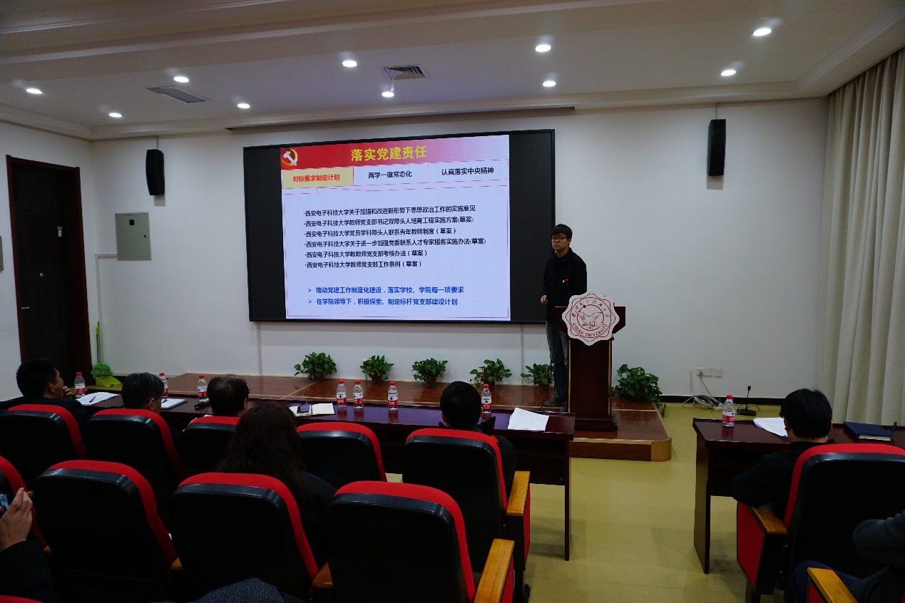(通讯员:李治霖、赵宇)为深入学习贯彻习近平新时代中国特色社会主义思想,全面落实学校基层党建工作考核要求,根据中共陕西省委组织部《关于优化改进全省基层党建考核工作的通知》、校党委《中共米兰milan官方网站委员会关于开展2019年度党组织书记抓基层党建述职评议考核工作的通知》(西电党组[2019]65号)等文件要求,机电院于12月31日—1月4日期间,针对8个教工党支部和17个学生党支部,深入开展了2019年度基层党支部述职评议考核工作。